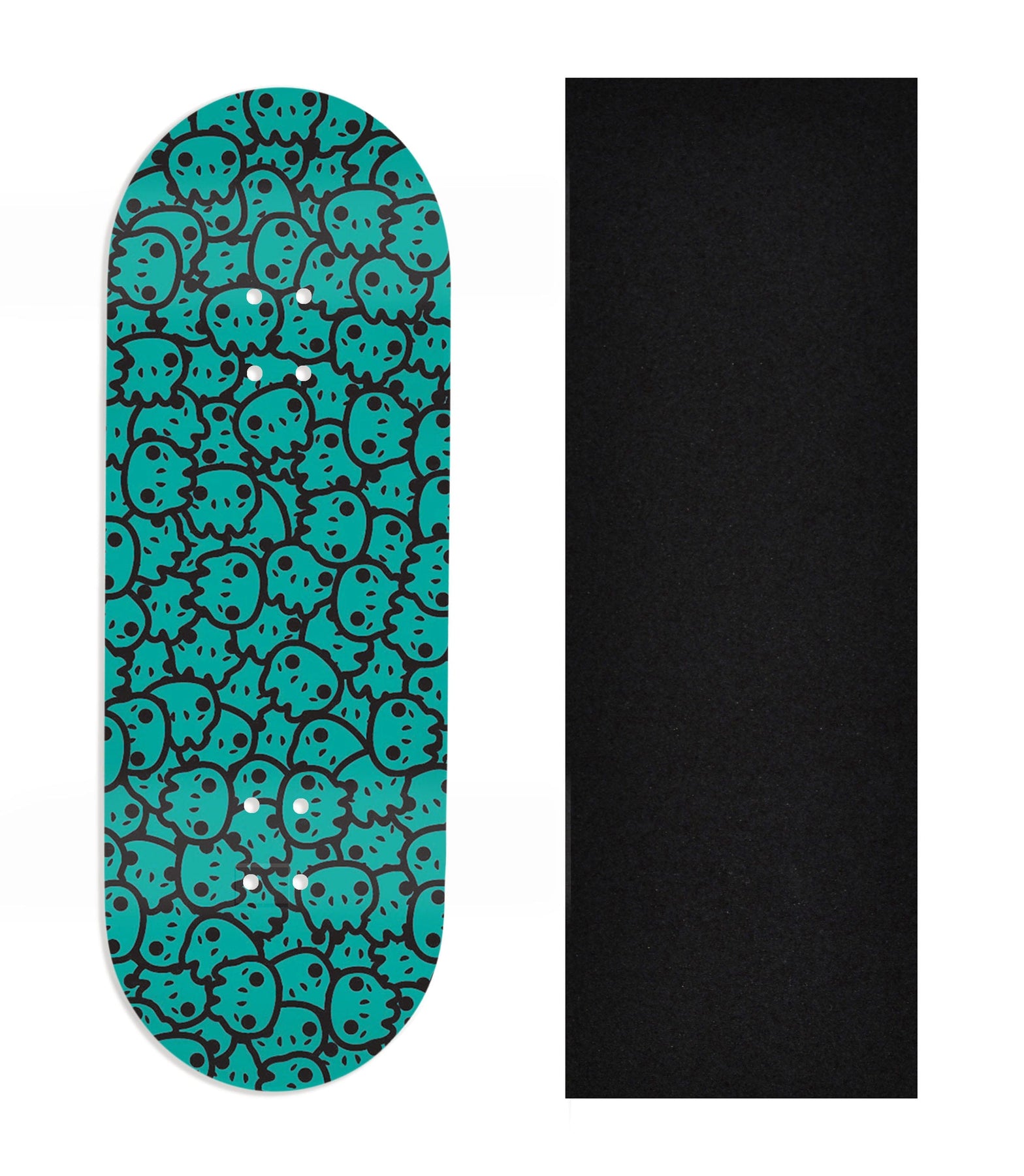 Heat Transfer Graphic Wooden Fingerboard Deck, Design Contest 2025 Winner, Jack B - "Teal Yeti Skulls"