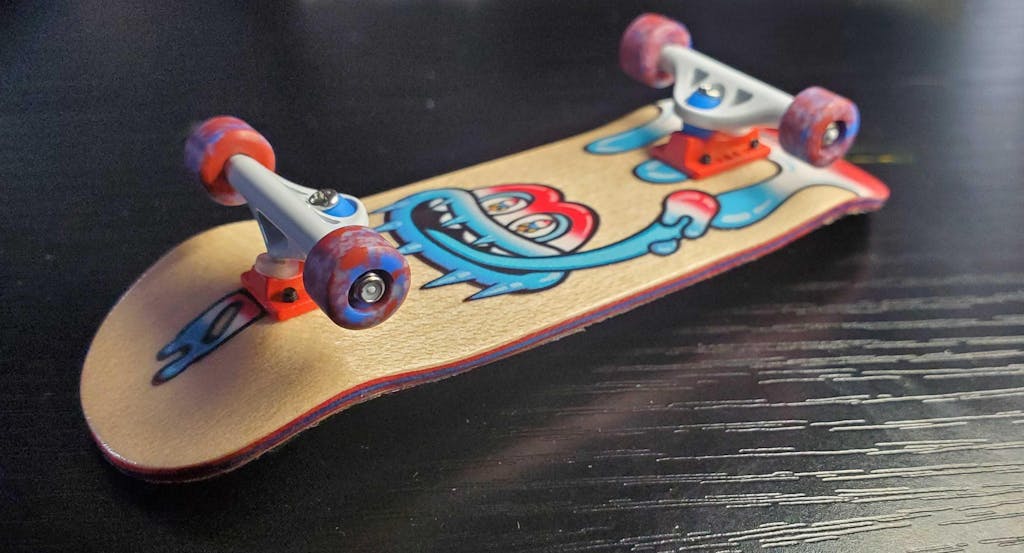 Set of four Limited Run Digital Swirls Apex Series, New Street Style All Terrain Polymer (ATP) Fingerboard Wheels in "Firecracker Swirl". Firecracker Swirl features red, white and blue color speckles and swirls. These superior performing, highly durable custom all terrain polymer wheels are completely new to the fingerboard industry and exclusive to Teak Tuning. The Apex Series ATP wheels feature a low friction grip for a slick and smooth feeling while riding. The Teak custom hybrid polymer blend material collects less dirt, and provides excellent control and performance on any surface, smooth or rough - indoor and outdoor. These wheels have a low level squeak when you powerslide across a surface or do a sharp turn. Despite the softer, 65D durometer, the polymer blend material is extremely durable and resistant to damage. Measuring 7.7mm in diameter and 4.9mm wide, these wheels are great for all skill levels and for doing tricks on almost any surface.These wheels contain premium bearings with an ABEC-9 rating. These bearings are our highest quality fingerboard wheel bearings. They are extremely smooth and completely silent. These are sturdy bearings that will allow extreme movement and control. However, due to them being greased and completely shielded, they do not have the free spin our "Ultra Spin" Edition bearings do. In actual use, they are extremely responsive and have a very free roll. These wheels are designed and made in the USA using a premium quality, custom Teak blended, hard plastic material. Each wheel is casted and cut in New York. Colors are hand mixed and may vary slightly between sets.