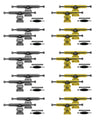 Includes 5 sets of 34mm Prodigy Trucks in Silver Chrome Colorway & 5 sets of 34mm Prodigy Trucks in Gold Colorway. (Each set includes 2 trucks, hardware and assembly tool).