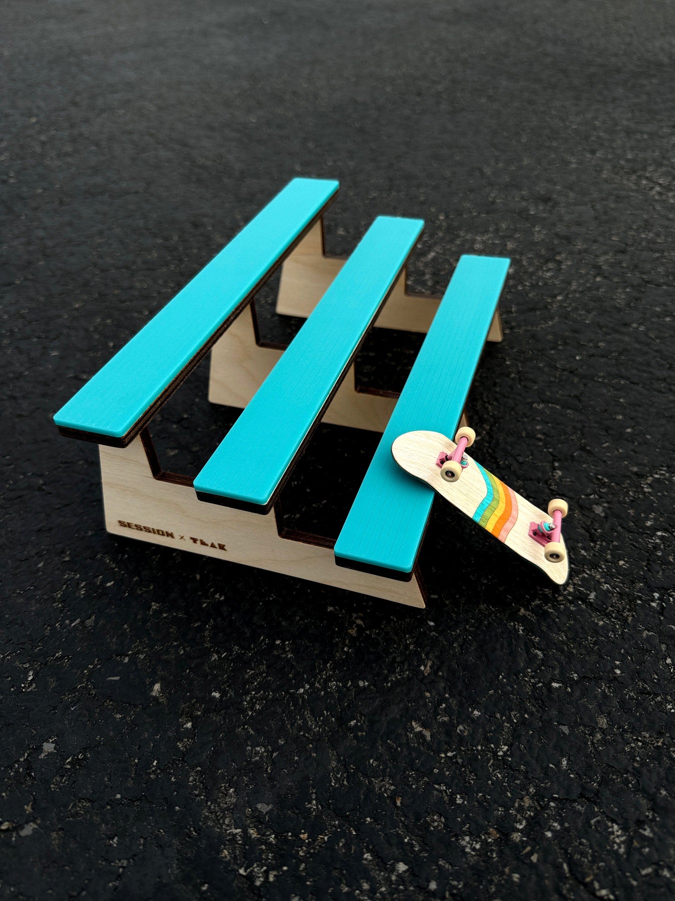 Every Session x Teak wooden obstacle starts with a design built for style and performance. Once the final design is locked in, we use precision laser cutting to bring each piece to life. From there, every section is carefully glued, assembled, and then hand-sanded to perfection — ensuring smooth edges and a clean, pro finish. Each obstacle is crafted start to finish in our Rochester, NY shop, making every piece a true blend of precision, craftsmanship, and passion for fingerboarding.