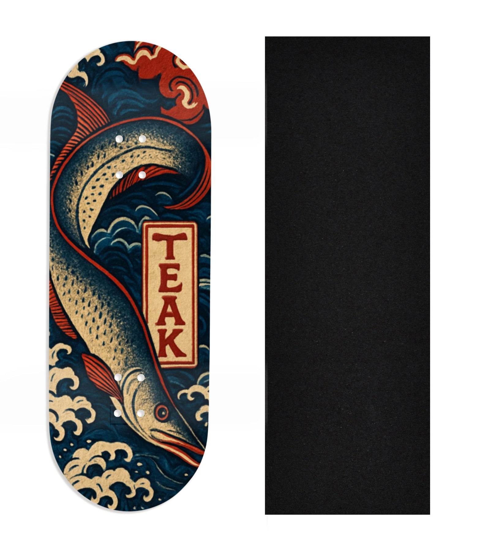 We're proud to share our 2025 Design Contest winning decks. These are a premium quality, maple fingerboard deck with a heat transfer graphic on the bottom. Real wear, true skateboard quality for realism. Features medium kicks and concave. Cross-grain plies for maximum strength and durability. Pre-drilled holes for screws allow trucks to be installed with ease Each board is carefully sanded and drilled. Both top ply and graphic base feature a glossy and smooth finish.