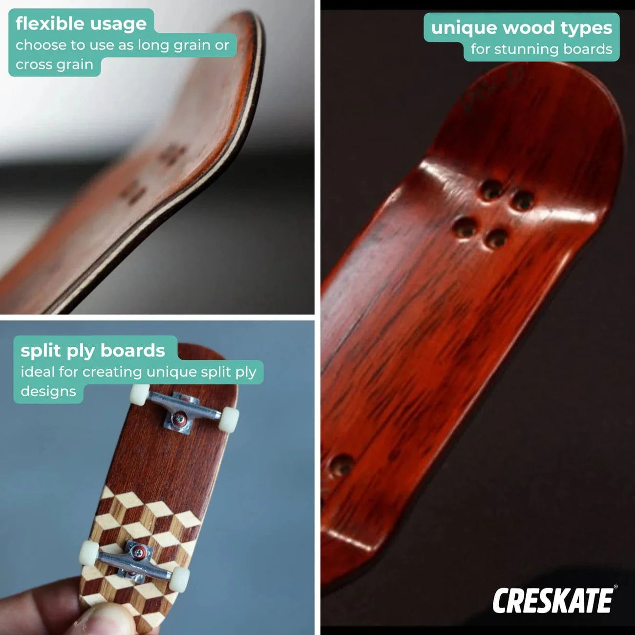 Create unique fingerboard decks with this special exotic wood veneer pack!